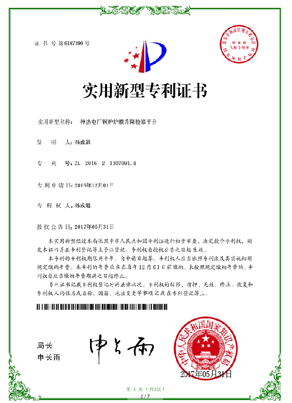 2025年被東方鍋爐股份有限公司認(rèn)定為鍋爐爐膛檢修升降平臺(tái)合格配套商!