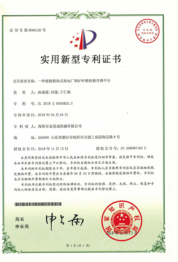 公司成立于2008年,年產(chǎn)“鍋爐爐膛檢修升降平臺(tái)”100余臺(tái)套的能力。自主研發(fā)的下支撐折疊式GJPT系列熱電廠鍋爐爐膛檢修升降平臺(tái),于2016年獲得行業(yè)首項(xiàng)國家專利保護(hù);經(jīng)過數(shù)年的發(fā)展,為各種型號(hào)煤粉鍋爐和循環(huán)流化床鍋爐的爐膛檢修,提供出一系列門類齊全的檢修平臺(tái)設(shè)計(jì)方案,先后為國家能源集團(tuán)、華潤電力、大唐集團(tuán)、晉煤集團(tuán)、益海嘉里集團(tuán)公司、嘉吉糧油公司、中糧集團(tuán)公司、山東時(shí)風(fēng)集團(tuán)、阜豐生物科技、晉煤集團(tuán)等400余家公司設(shè)計(jì)、定制了鍋爐爐膛檢修升降平臺(tái)。