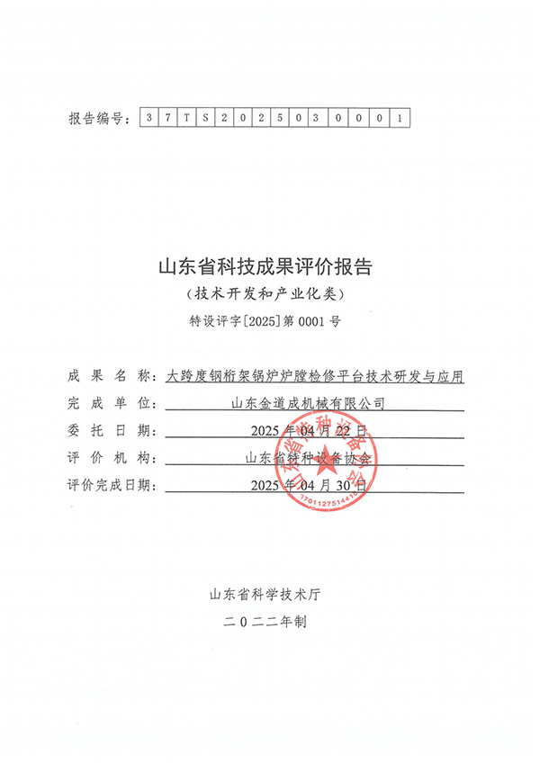 4月30日,山東省特種設備協會組織召開“大跨度鋼桁架鍋爐爐膛檢修平臺技術研發與應用”科技成果評價會,對山東金道成機械有限公司的創新項目進行評估。此次會議匯聚行業頂尖專家,最終認定該技術達到國內領先水平,為鍋爐檢修領域注入新動能。